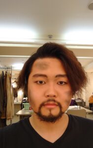 その他、舞台メイク(※男性は特に苦戦します。画像ははじめて一人でしたメイク)であったり稽古場での立ち振舞など多くのことを学ぶ必要がありますがすべてが完璧という人もほとんどいないため自分の強みを伸ばしつつ弱点を潰していけば見えてくるはずです。